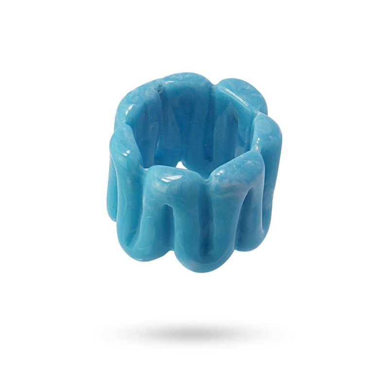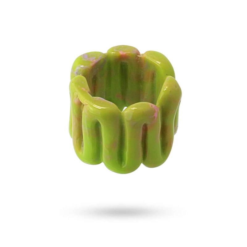 Maxi anillo e plástico reciclado de nuestra colección Candy. Un anillo zigzageante y muy apetecible que aporta color y vitalidad a tu día a día. Mide 18 mm de alto. Talla única. Ideal…