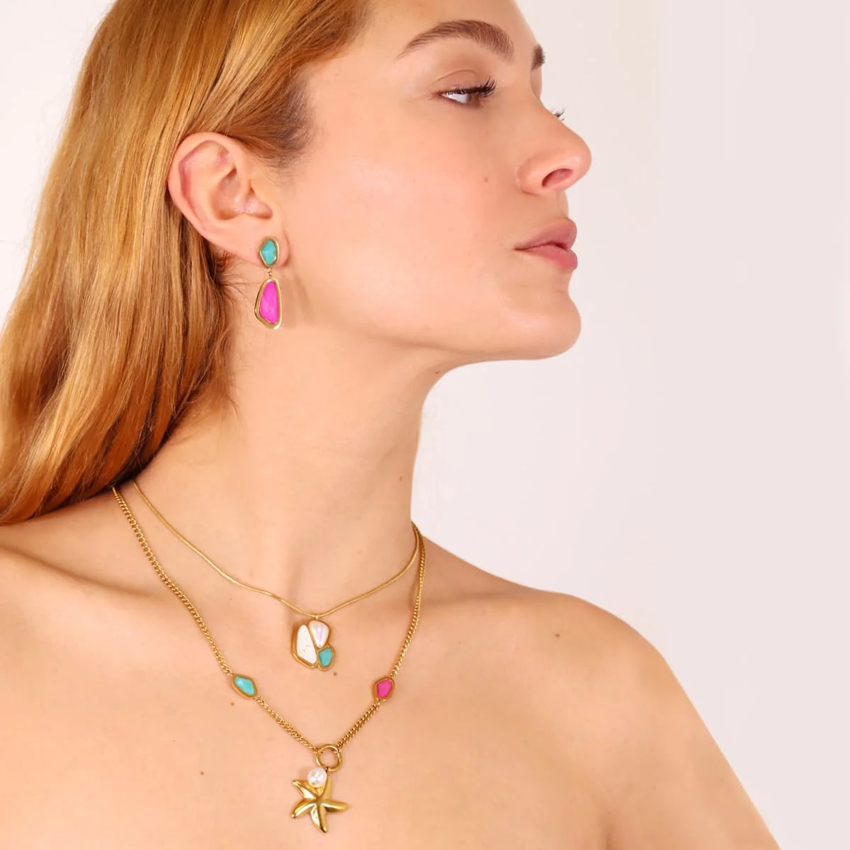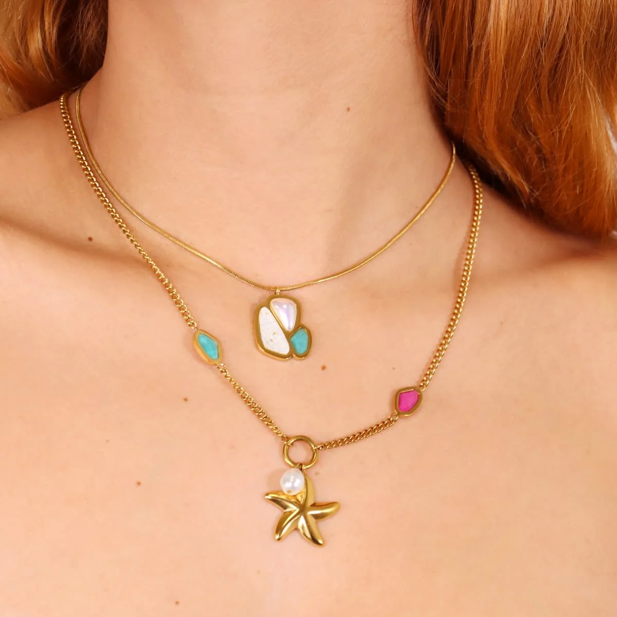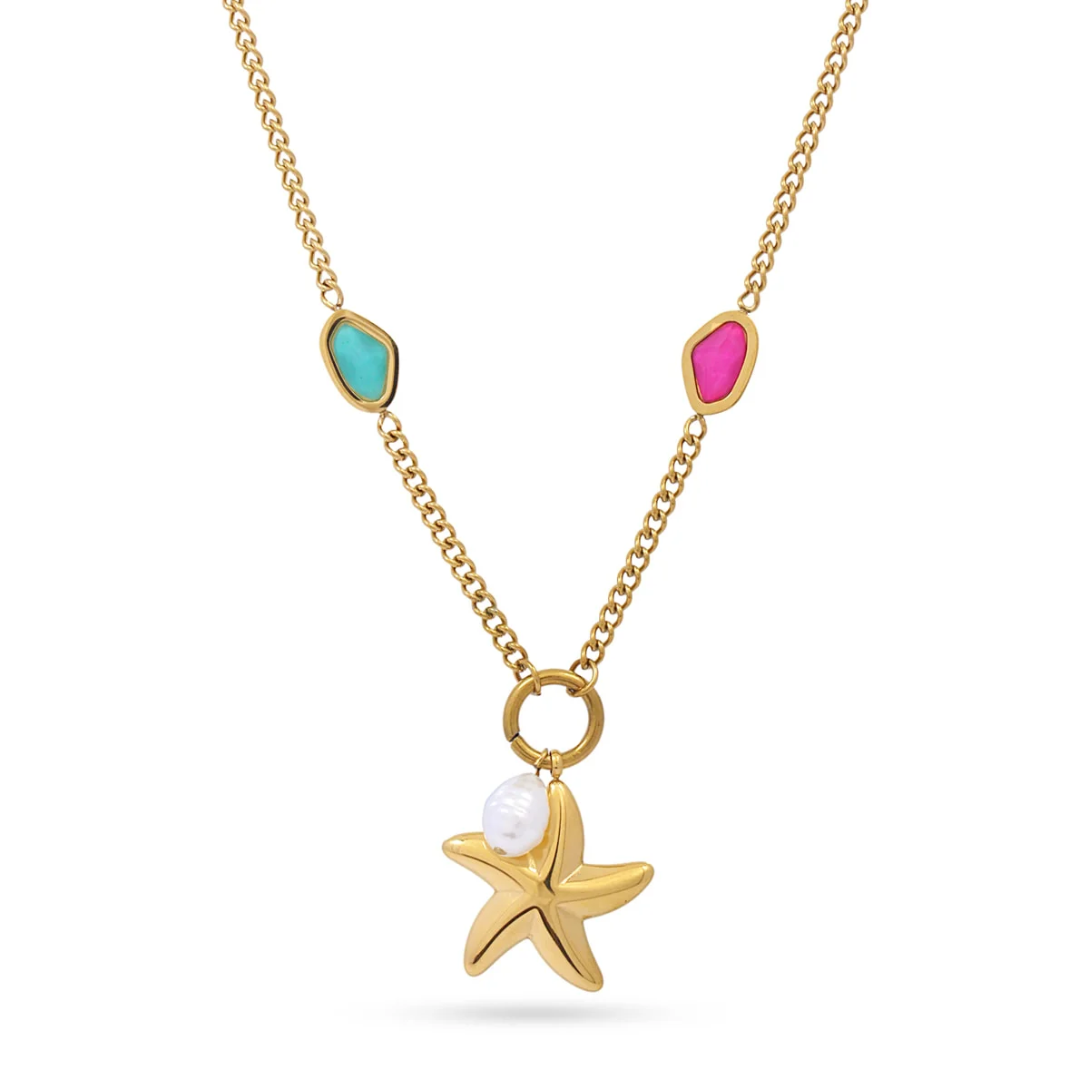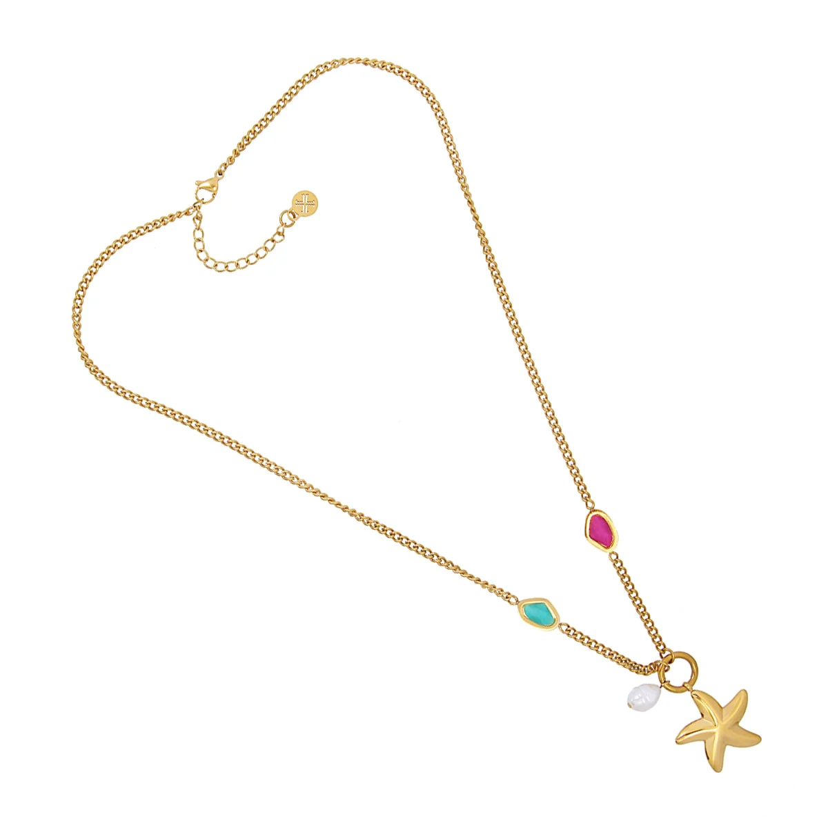 Déjate llevar al mar con el Collar Star. Diseñado con los mejores materiales e inspirado en un verano en la playa, este collar es perfecto para resaltar tu escote con su detalle de estrella de mar. Su cadena de extensión y calidad aseguran comodidad. Ideal para evitar reacciones alérgicas.