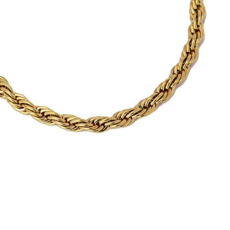 Pulsera de acero hipoalergénico tipo cable trenzado a modo de cordón de 4 mm, en dorado o plateado. Es un básico esencial que toda chica debe tener porque combina con todo tipo de prendas y accesorios, es sencilla y práctica. Una todo terreno que puedes mojar, no produce alergias y no oxida. Mide 15 de largo y lleva cadena de exensión con 5 cm extra para que la ajustes a tu gusto. Imprescindible…