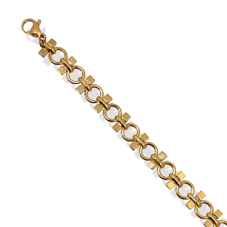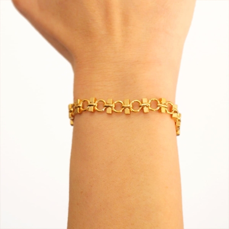 Descubre la elegancia y versatilidad de la Pulsera Laptev. Con eslabones únicos de acero, esta pulsera es ideal para complementar cualquier outfit. Disponible en oro y plata, su cadena de extensión hipoalergénica te asegura una comodidad excepcional. Haz conjunto con el collar a juego y luce un look sofisticado y exclusivo.