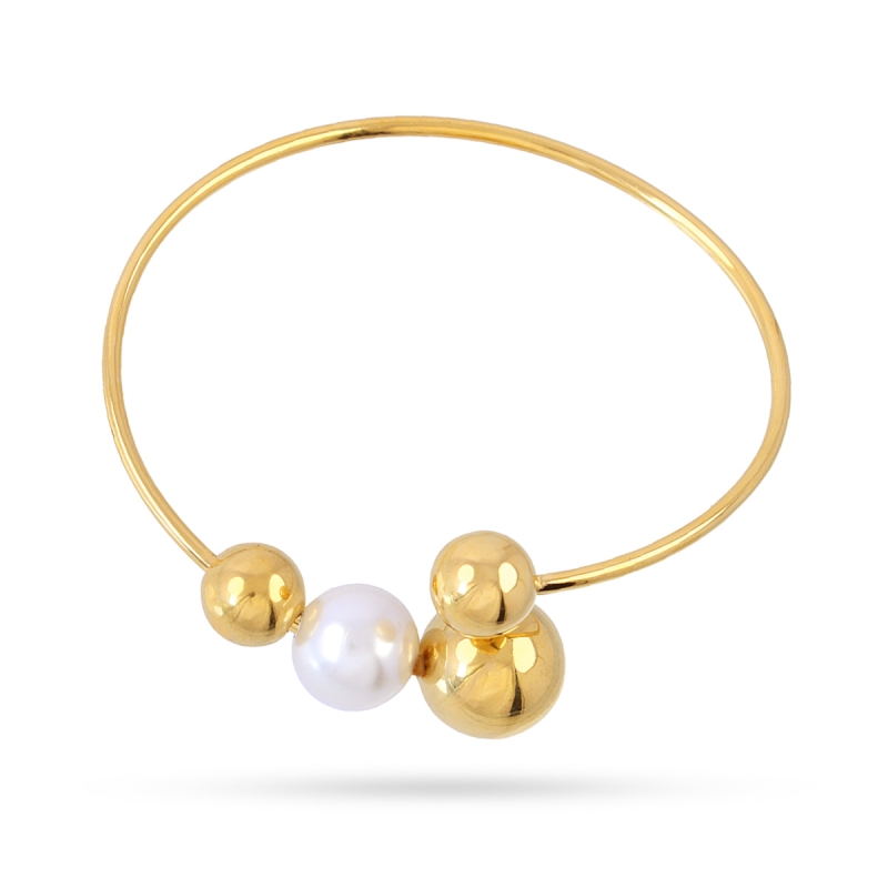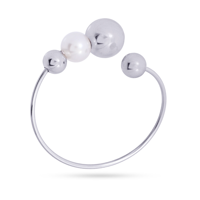 Eleva tu estilo con nuestra pulsera Sphere. Fabricada en acero flexible con detalles esféricos y perlas, esta pulsera es un complemento único e ideal para cualquier ocasión. Combínala con nuestras piezas Orbit en color oro o plata para un look de tendencia minimalista. Además, es hipoalergénica para una experiencia cómoda y elegante día y noche.